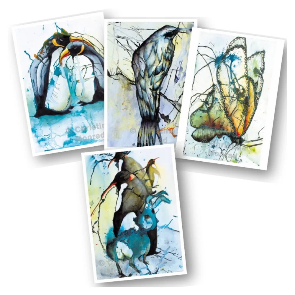 4 stk. A5 kort med forskellige tusch-ballade motiver som vist på varebillederne