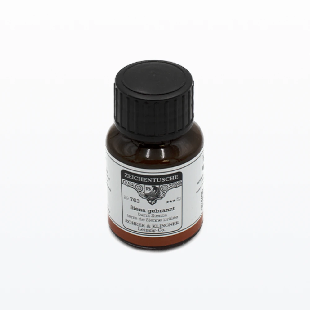 50 ml. flydende vandfast tusch i glasflaske med skruelåg.