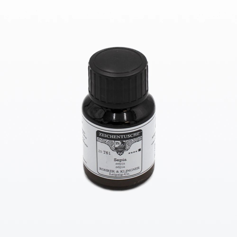 50 ml. flydende vandfast tusch i glasflaske med skruelåg.