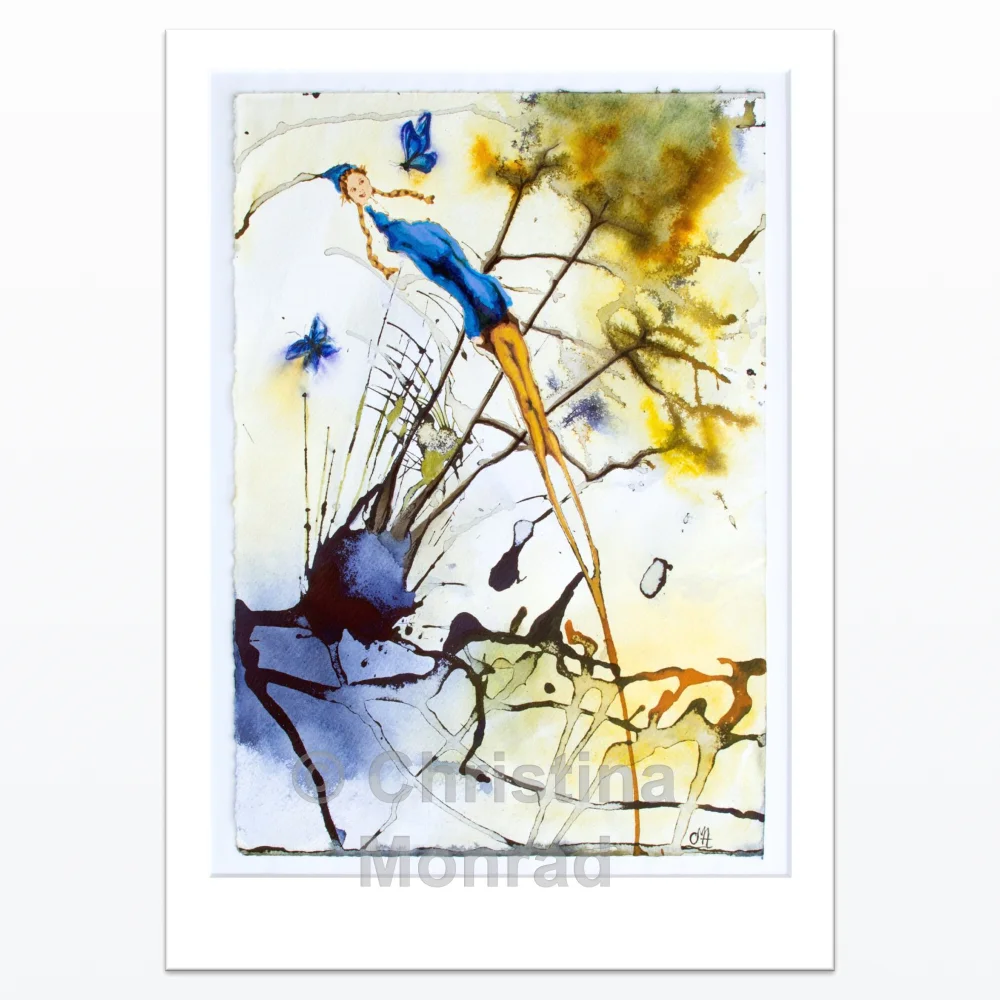 A3 plakat af billedet “Pige på tur” af Christina Monrad. Originalen er malet som “tusch-ballade” – dvs. med flydende tusch og akrylmarker på akvarelpapir.